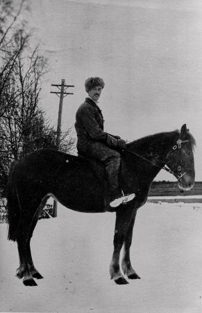 Bengt Österholm hemma på permission under finska vinterkriget 1940. På fotografiet syns Bengt ridande på sin sadelförsedda häst. En ofta förekommande syn i Tölby var Bengt ridande genom byn.