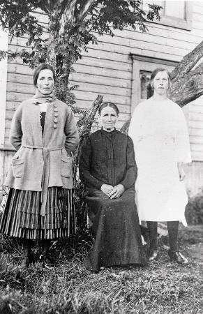 Fotografiet av familjen Backman är taget i början av 1920-talet vid Vilhelm och Sofias gård i Tölby. På fotografiet syns Anna Sofia född år 1864 sittande med döttrarna Ida född år 1892 till vänster och Saida född år 1905 till höger.