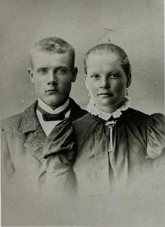 Fotografi av bonden och fiskaren Johannes "Haga-Hannes" som föddes år 1877 och hustrun Alma född Boij år1878 "Haga-Alma".