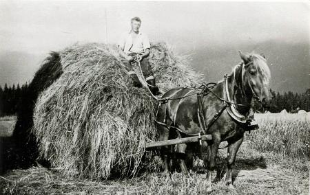 Fotografi av Folke Smeds som använde häst och "höjsläpo" ännu under början av 1960-talet.