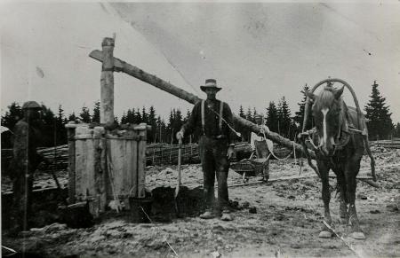 Vidstående bild visar en del av tegeltillverkning på "Jåfs Ulrikas Öirin" då "Ulrikas karlarna" år 1925 slog tegel för leverans till Vasa Stentyckeris bygge. Vid "leirkranen" till vänster står Otto Enegren och Petter Ceder från Rimal från en släkting till Ulrik. Petter sköter om påfyllningen med spade av leran som brukats genom roterande av krans inre till lämplig konsistens genom hästens kringvandring. Evert Påfs, lite skymd av bommen skottar fram mera lera att material skall finnas tillhanda för de flitiga händer som kunde slå 2000-2200 tegelämnen per dag. Fotografiet har tillsätts fotokursen av Johannes U.son Påfs, född 1894.
