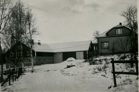 Fotografi av Teodor Enegrens bondgård, av vilket bostadshuset och ekonomibyggnaden är synlig på fotografiet.