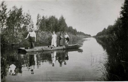 Ett fotografi av en söndagsutflykt med en eka "öitjo" på Toby å under 1950-talet.