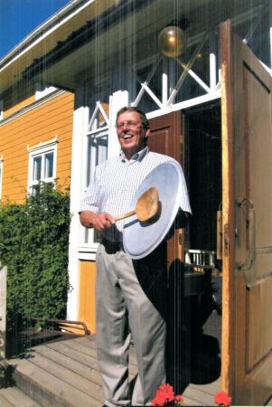 Folke Smeds, fotograferad på trappan vid Hemmergården i Solf