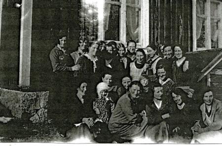 Nere: Ellen Enegren, Ester Påfs och dottern Margit, okänd, Elsa Ström f. Björkén, Elsa Backman, Vivi Remahl f. Forth. Övre: Svea Kull f. Forth, Ingrid Stranden f, Forth, Edit Smeds f. Enegren, 3 okända, Siri Backman f. Thölix, Edit Thölix f. Båsk, Aili Andersson f. Smeds, Senny Smeds och Irene Påfs.