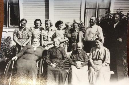 Sittande Fanny Forstén från Vasa, affärsbekant till Johannes och Sofia, Anna Matilda Forth, Vendla (från "Mataansus" i Solf )Martin , gift 3; ggn med Jonas Martin,(Jalle kallar henne för "backmommo" för hon skötte honom när han var liten) Sofia Forth
