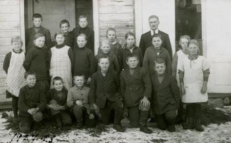 Tredje raden: Erland Forth, Verner Fred, Rafael Forth. Vikby hade egen skola åren 1922 till 1928 därav saknas elever från Vikby på fotografiet.