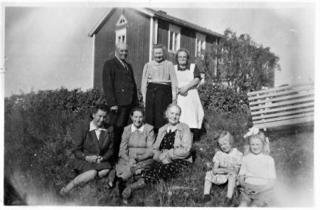 Mannen stående Alfred Lund, sittande kan vara Valdine Forth (förlovad med John Smeds innan kriget), och Hilma Forth. Flickorna Sig-Britt Rodas och Solveig Strand, Idas dotterdotter. Uppgiftslämnare Monica Smeds