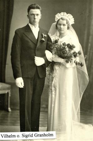 Bröllopsfotografi av Vilhelm från Tölby och Sigrid f Nygård från Runsor. Vilhelm son till Axel Granholm bonde på Svarfar hemman på Näsbacken. De fick barnen Sig-Britt och Jörgen.