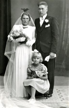 Bröllopsfotografi 1940 av Anna Thölix och Rafael Forth. Båda från Tölby. Brudnäbb Karin Englund från Solf