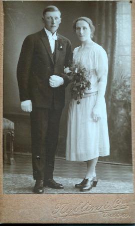 Brudfotografi av Evert Påfs f 6.4.1898 och Jenny Smeds f 23.5.1898. I äktenskapet föddes två döttrar Karin och Barbro.,