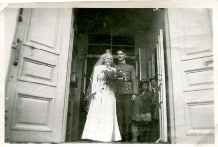 Margit f Påfs i Tölby och Maken Bengt Berg från Vasa på kyrktrappan vid Korsholms kyrka.