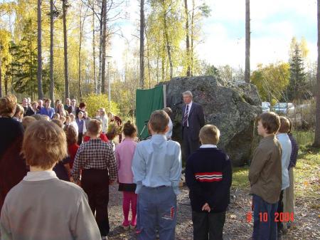 Minnestavla av Thea Helenelund avtäcktes. Roger Thölix berättar om verket.