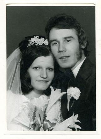 Bröllopsfoto, Eija f Harju från Vasa och Tage Vilhelm Backman, Tölby. Barn: Patricia, Ronny och Claus. Paret bosatte sej i Vasa.