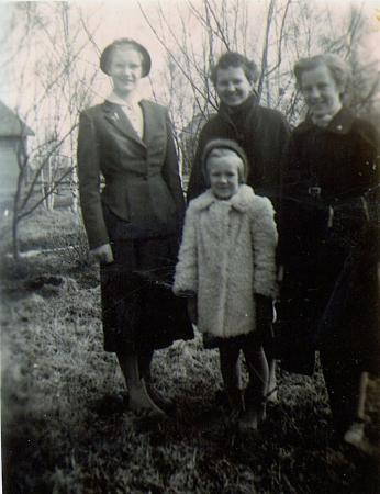 Doris Thölix, Eila Mykrä, Sig-Britt Rodas och stående främst Lisbeth Thölix. Familjen Mykrä härstammar från Karelen och kom till Tölby som evakuerade. De bodde i en stuga vid Jåfstået. Eila gick i folkskolan i Tölby.