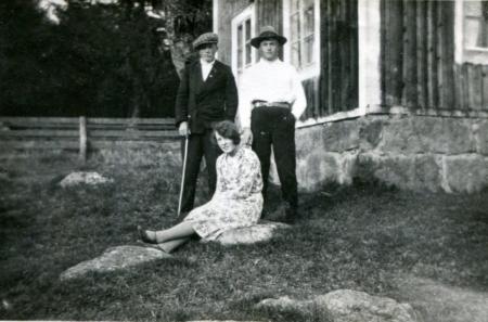 | Sittande Sylvia Svarvar, gift Sandelin. Stående till vänster hennes bror John Svarvar 1916-1940, stupade vid Summa. Till höger Erik Thölix född 1911, avled i fångenskap enligt ryska myndigheter 9.8.1943. | |