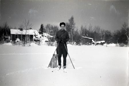 | Hemming Boijer tillsammans med Topi på skidtur ute på Bolotisarna. | |
