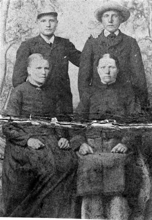 Sittande: Maria Sofia Svarvar gift Borgar, Vendla Borgar gift med Karl Johan Smeds "Greddjus", Stående August Rosendahl och Karl Asplund.