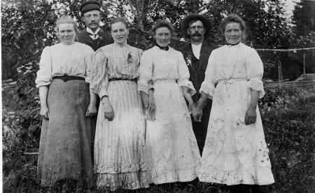 På fotografiet stående från vänster: Amanda Karolina Holm född år 1885, gifte sig med Richard Martola i hans andra äktenskap. Erik Forth född år 1884 från Tölby. Okänd. Selma Thölix född år 1886, gifte sig Norrgran. August Eur, Toby. Anna Forth född år 1880, gifte sig Kull i Helsingby.