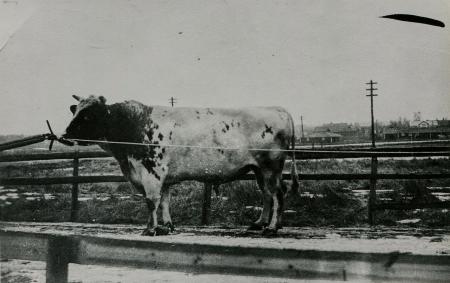Fotografi från 1939 av avelstjuren Fä-Kung A9061 i Tölby.