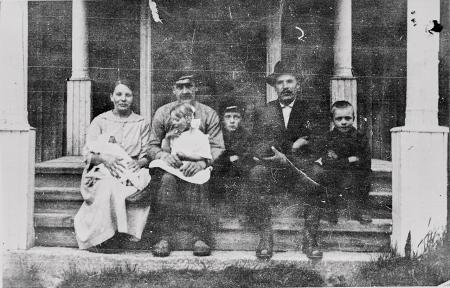 Från vänster, Ida med sonen Erik i famnen, Vilhelm med dottern Berit, sonen Birger, Alfred Martin på besök hos familjen Smeds och sonen John.