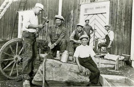 fotografier, arbetare, arbetande, fotoalbum, stenbearbetning, cementering och betongarbeten, cement