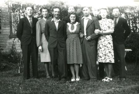 I mitten i bild Dagny och till höger om henne nyblivna maken Alvar Nygård från Helsingby. Till vänster hennes bror Bengt Österholm. de övriga okända.