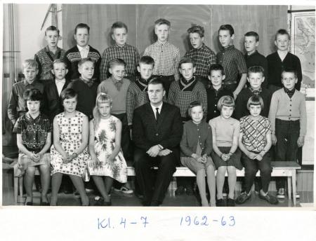 Roland Backman, Birger Smeds, Lars-Johan Borgar, Atle Rosendahl, Johan-Erik Påfs, Tage Backman, Bertel Aura, Jörgen Holm. Rad 2, Ingmar Forth, Kasten Österholm, Bengt Aspling, Stig-Ola Thölix, Mikael Forth, Magnus Forth, Hasse Karlsson, Kurt Aspling, Holger Viklund. Rad 3, Birgitta Back, Mary Smeds, Nancy Ribacka, Karin Aura, Elsbeth Forth, Rose-Maj Påfs. Lärare Nils Ånäs.
